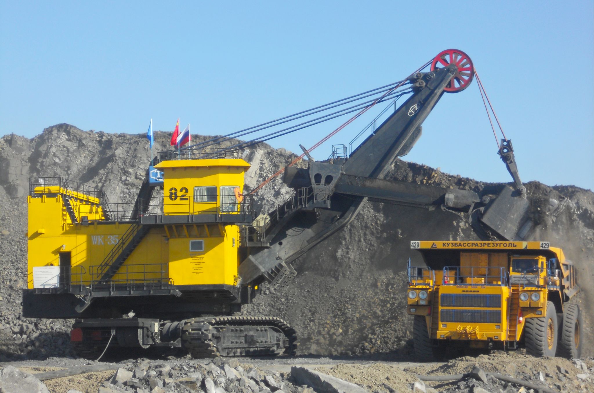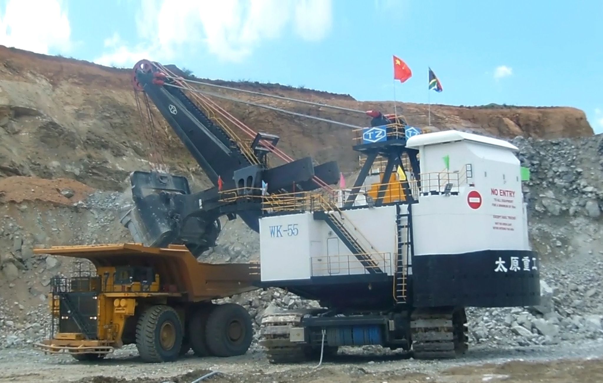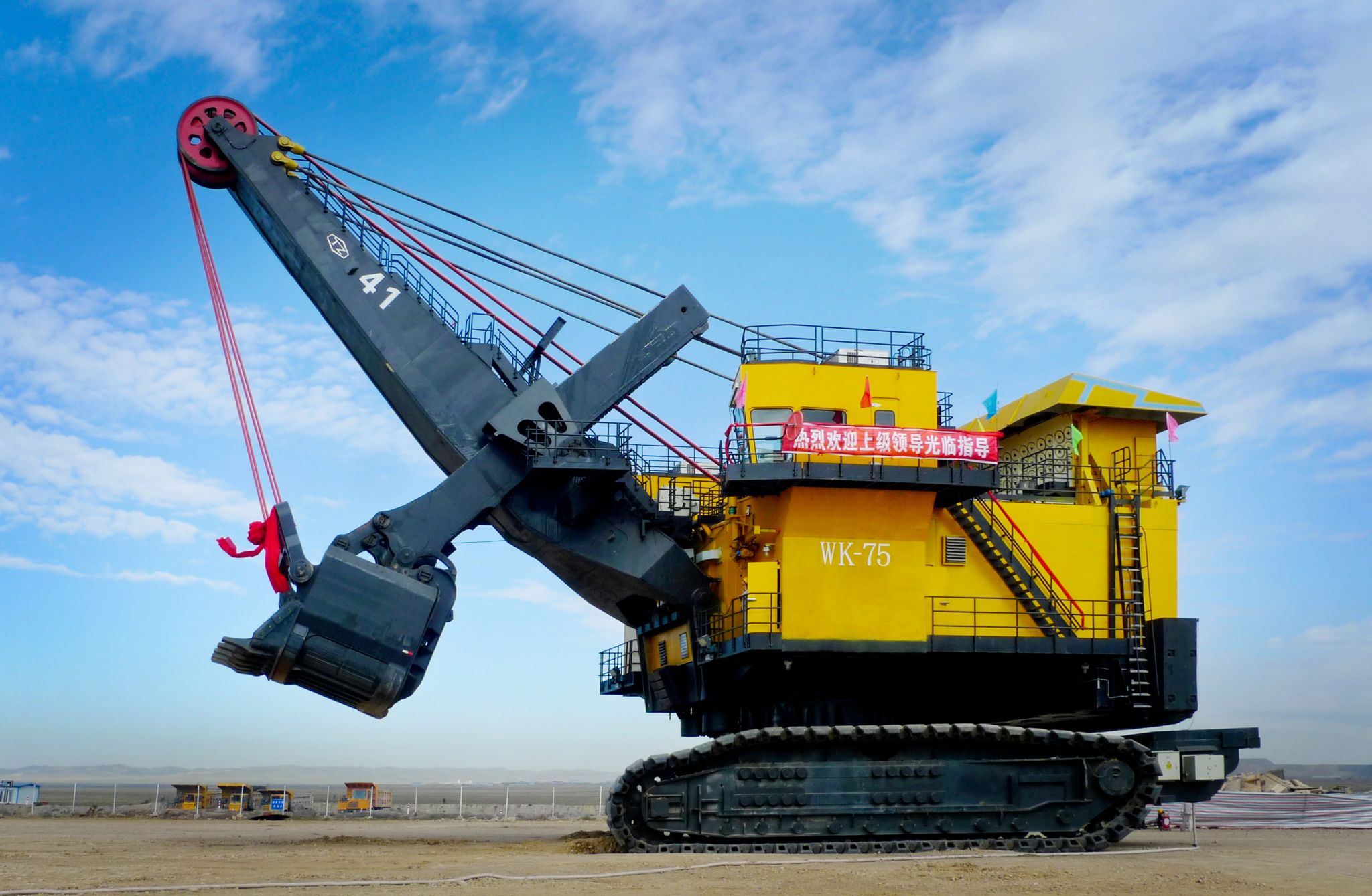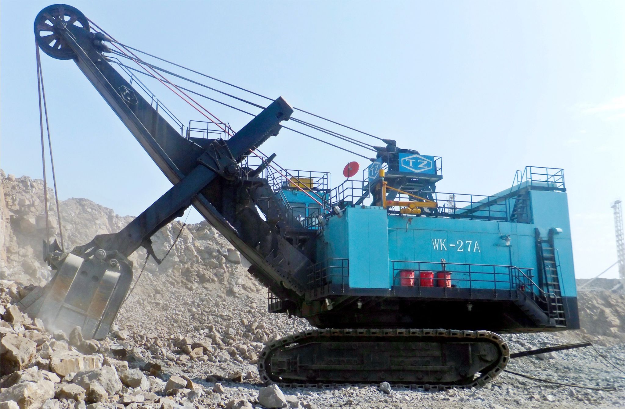 WK系列礦用機(jī)械正鏟式挖掘機(jī),標(biāo)準(zhǔn)斗容4m3~75m3,已生產(chǎn)1400余臺,廣泛應(yīng)用于大型露天煤礦、鐵礦及有色金屬礦山的剝離和采裝作業(yè),數(shù)十臺產(chǎn)品出口到10余個國家。