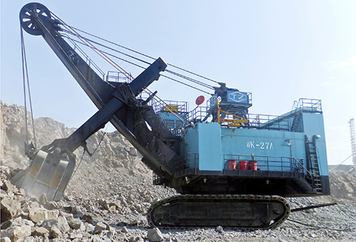 WK-27A礦用挖掘機與154-292t礦用汽車配套使用,可適用于千萬噸級大型露天煤礦、鐵礦及有色金屬礦山的剝離和采裝作業(yè)