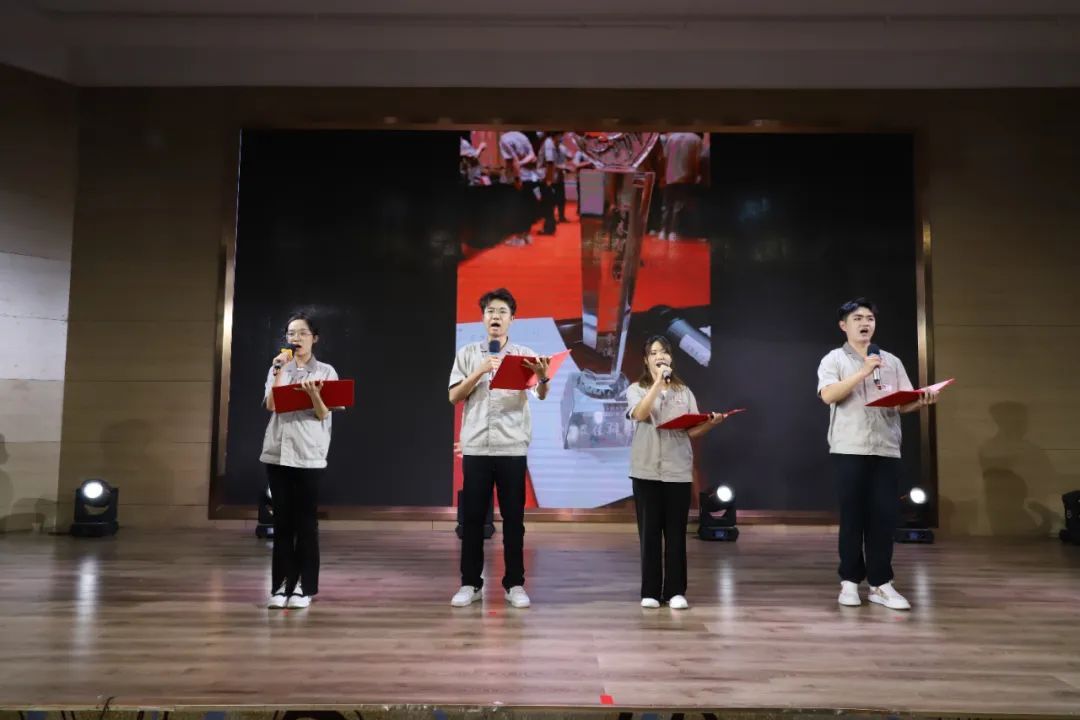 全場活動共分為矢志砥初心、激昂正青春、建功新時代三個篇章。晚會在VLOG《一起向未來》短視頻中拉開了帷幕,傳統(tǒng)藝術(shù)三句半《太重新人說太重》展現(xiàn)出新入職大學(xué)生以堅定的信念、過硬的本領(lǐng)、擔(dān)當(dāng)?shù)挠職庾V寫太重贊歌的精氣神。“讓我們緊跟‘五年三步走’的戰(zhàn)略方向,以青春之名,放飛理想,為輝煌的太重獻(xiàn)熱爭光!”原創(chuàng)詩朗誦《以太重之名為太重爭光》表述著新入職大學(xué)生的激情與夢想,激勵著太重新青年用奮斗和奉獻(xiàn)圓夢,共同繪就太重美好的明天。