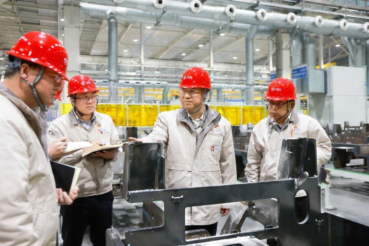 在新能源智能叉車項(xiàng)目現(xiàn)場,生產(chǎn)線已全面投入運(yùn)行,正全力沖刺“達(dá)產(chǎn)達(dá)效”,為“十五五”開好局、起好步夯實(shí)基礎(chǔ)。韓珍堂走進(jìn)自動化機(jī)加工與焊接區(qū)域,實(shí)地督導(dǎo)門架、車架等關(guān)鍵部件的試制攻關(guān)。他強(qiáng)調(diào),要將學(xué)習(xí)貫徹全會精神的成效,落實(shí)到打造卓越產(chǎn)品的每一個細(xì)節(jié)之中。必須持續(xù)強(qiáng)化工藝研究,全面推進(jìn)精細(xì)化作業(yè),從根源上提升質(zhì)量管控水平,確保產(chǎn)品一次下線就是精品,更是工藝品。全體干部職工必須緊盯目標(biāo)、掛圖作戰(zhàn)、聚力攻堅(jiān),真正把我們的技術(shù)優(yōu)勢、質(zhì)量優(yōu)勢轉(zhuǎn)化為市場競爭力。