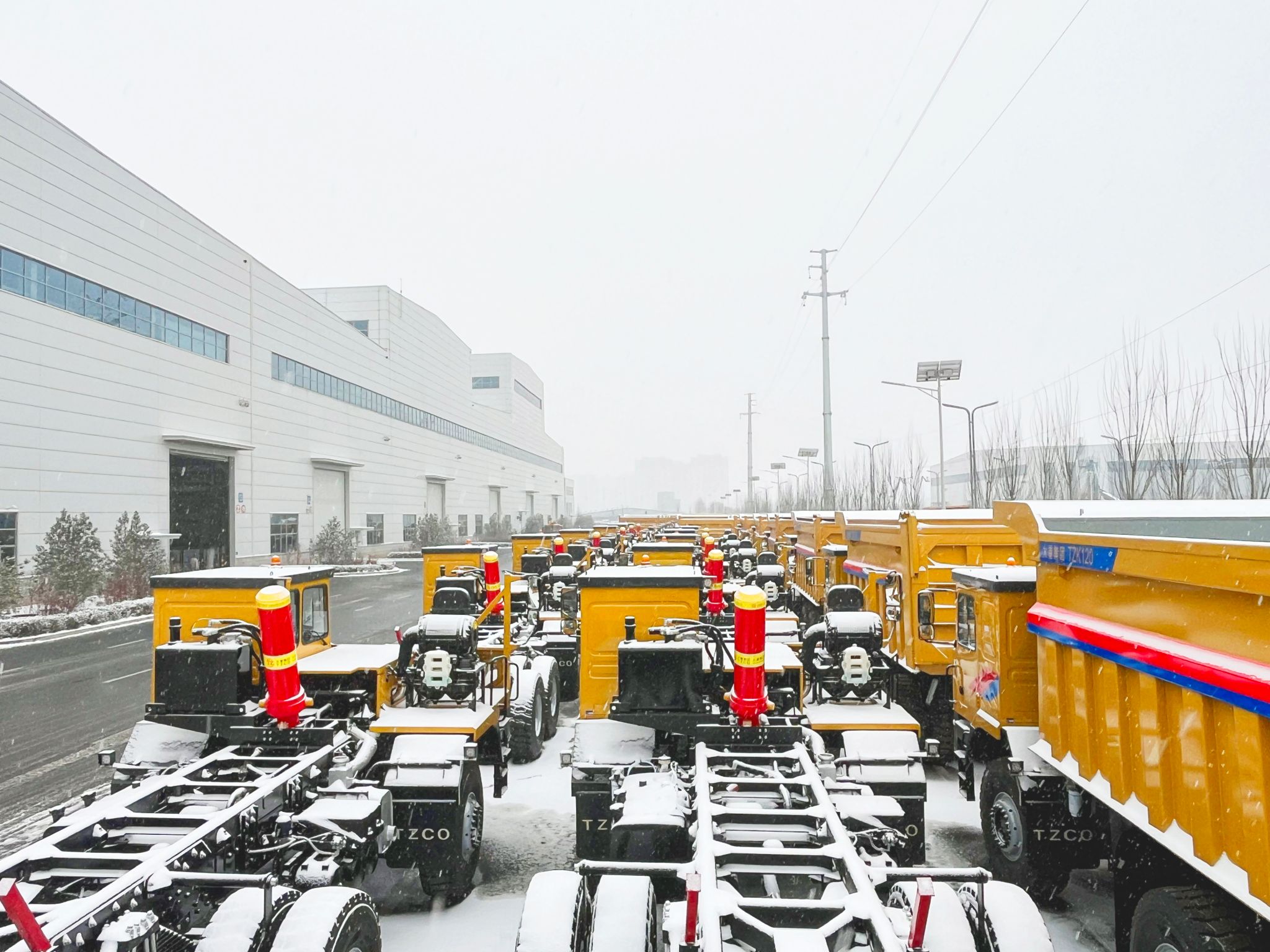 白雪皚皚間,一臺臺整裝待發(fā)的艷麗產品默然矗立,宛如彩塑靜立于純白畫卷。