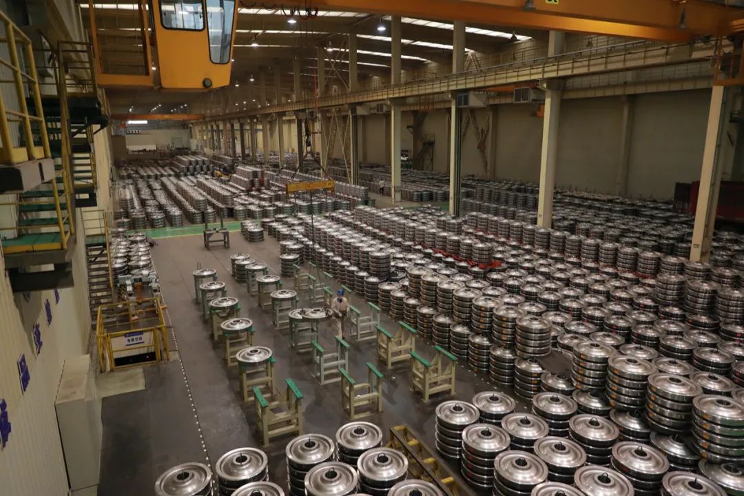 這是一條年產(chǎn)車輪40萬片的生產(chǎn)線,也是目前國內(nèi)自動化程度最高的車輪生產(chǎn)線。從這里生產(chǎn)出來的車輪,可用于高鐵、地鐵、大型客車等。
