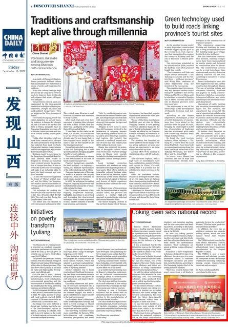今天,《中國日報》全英文刊發(fā)文章介紹太重集團的7.25米搗固焦?fàn)t設(shè)備。