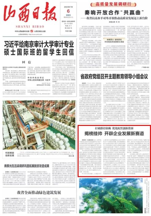 今天,山西日報頭版刊發(fā)《揭榜掛帥 開辟企業(yè)發(fā)展新賽道》文章,聚焦太重結(jié)合技術(shù)需求,通過“揭榜掛帥”項目,與高校、科研院所科研方向、科研成果精準(zhǔn)對接,堅持以科技創(chuàng)新賦能高質(zhì)量發(fā)展,不斷完善技術(shù)研發(fā)體系,力爭在山西省轉(zhuǎn)型發(fā)展中更好發(fā)揮龍頭帶動作用。