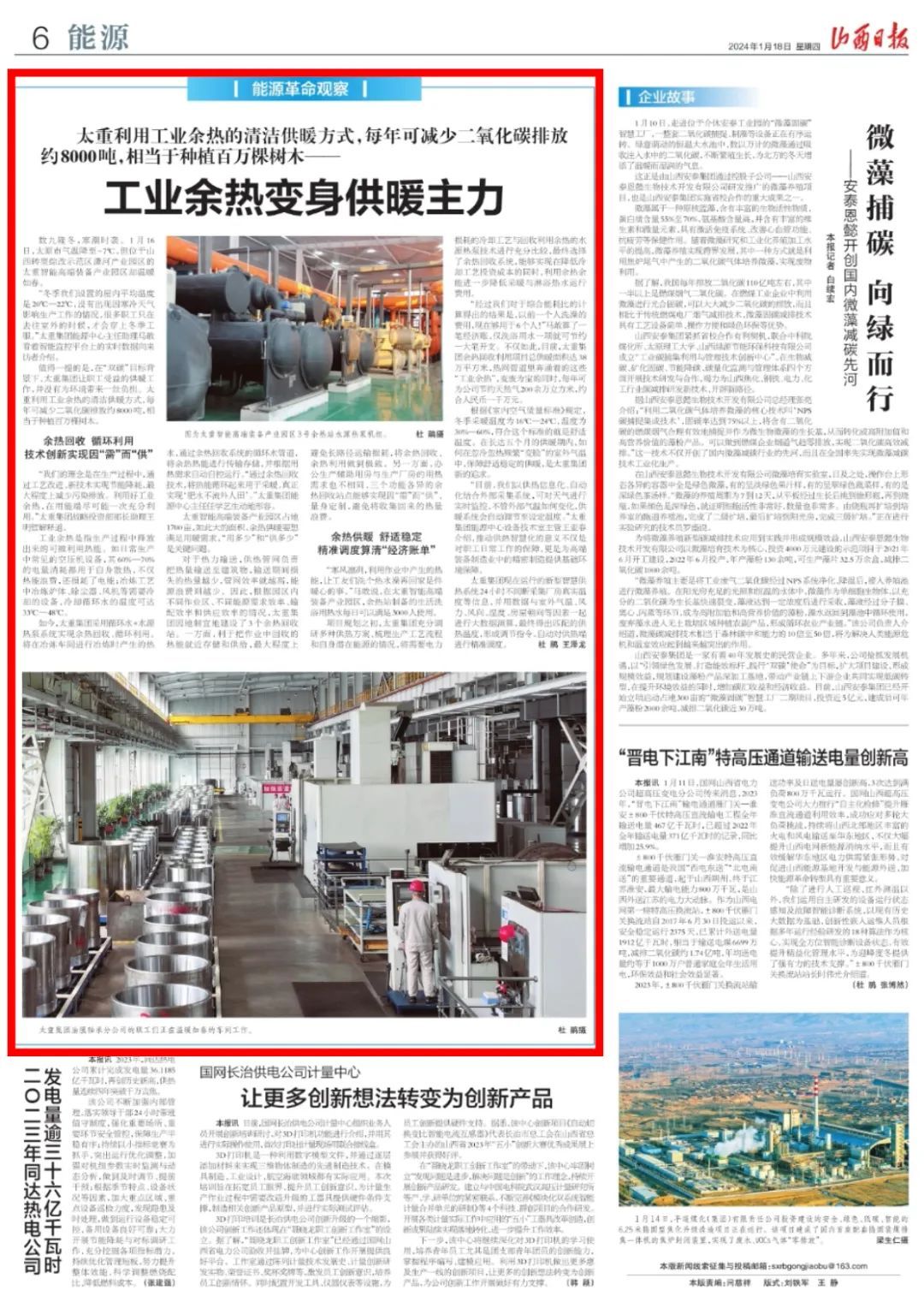 今日,山西日報(bào)《能源革命觀察》專欄,對太重集團(tuán)聚焦國家“雙碳”目標(biāo),通過技術(shù)創(chuàng)新變廢為寶,將工業(yè)余熱變身供暖主力進(jìn)行了重點(diǎn)報(bào)道。一直以來,太重集團(tuán)持續(xù)踐行“綠水青山就是金山銀山”理念,著力構(gòu)建綠色環(huán)保長效工作機(jī)制,加快推動(dòng)公司綠色低碳轉(zhuǎn)型發(fā)展,為實(shí)現(xiàn)國家戰(zhàn)略貢獻(xiàn)太重力量、展現(xiàn)國企擔(dān)當(dāng)。