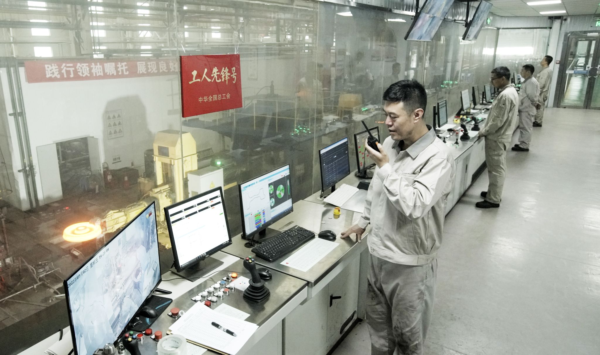 鍛熱工部負(fù)責(zé)車輪的加熱、預(yù)成型、成型、沖孔、軋制和壓彎及車輪擴(kuò)氫、退火、淬火、正火和回火等工序。2019年鍛熱工部共生產(chǎn)車輪總數(shù)18萬件左右,超額完成俄羅斯8萬余件車輪交貨任務(wù)。2020年不斷優(yōu)化浸入式淬火臺滿足美國輪箍的生產(chǎn)和交貨需求,對噴淋淬火臺進(jìn)行升級改造。2021年工部不斷統(tǒng)籌安排,合理優(yōu)化設(shè)計(jì),自發(fā)組成突擊隊(duì),保證了項(xiàng)目“當(dāng)年立項(xiàng)、當(dāng)年實(shí)施、當(dāng)年投產(chǎn)”,其中中徑14米環(huán)形爐僅用時(shí)85天順利交付使用,第一片熱軋車輪于2021年12月31日成功下線。