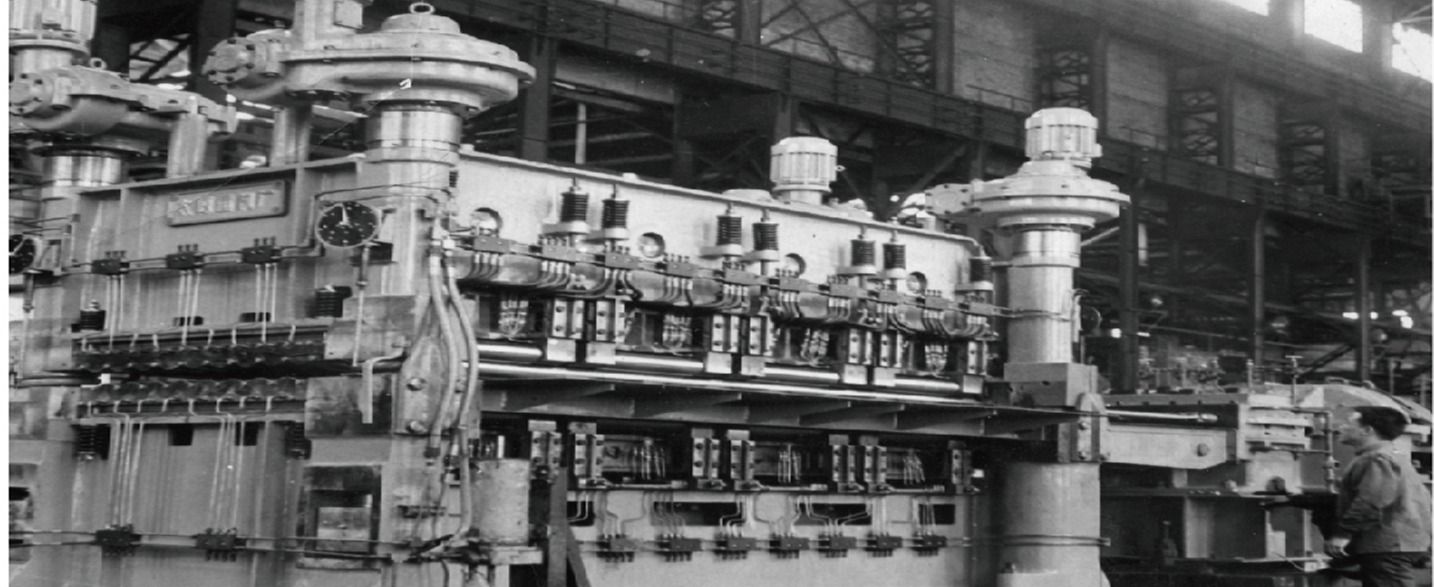 板材矯正機是太重的拳頭產(chǎn)品之一,多次榮獲國家和省部級獎勵。輥數(shù)從五輥到二十三輥,矯平厚度從0.5至100毫米,已發(fā)展成為系列產(chǎn)品。圖為1965年試制成功的17輥矯正機。